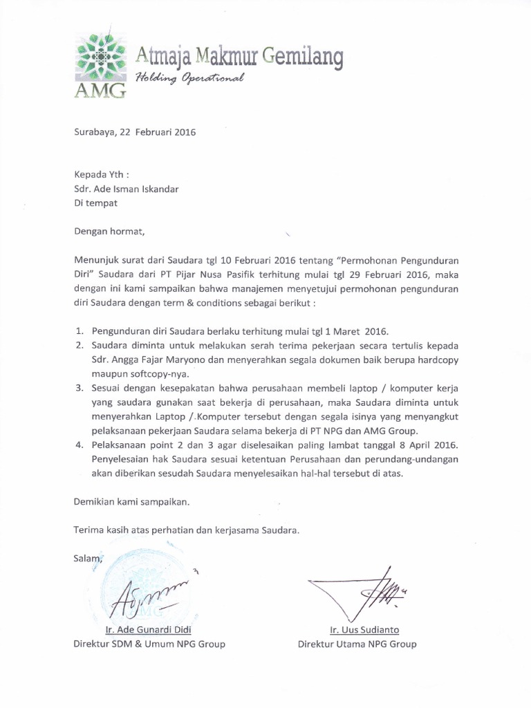 Jika anda ingin mengundurkan diri atau resign dari kantor tempat anda bekerja sekarang, ada prosedur yang anda harus lewati. Sebagai catatan, contoh surat resign ini dibuat berdasarkan pengalaman banyak orang. Contoh surat resign yang profesional. Contoh surat ini adalah pengajuan mengundurkan diri dari jabatan sekertaris osis sma. Contoh yang pertama ini merupakan contoh surat resign kerja yang sederhana. 1.contoh surat pengunduran diri resign. Surat pengunduran diri kerja atau surat resign yang anda buat haruslah berisi dengan alasan yang logis dan masuk akal agar dapat diterima dengan baik oleh perusahaan. Sebagai salah satu jenis surat resmi, teknik penulisan surat pengajuan tentu berbeda dengan surat. Hormat saya, listya nugroho ahmad. Salah satunya adalah membuat surat resign atau surat pengunduran diri yang baik dan benar. Contoh ucapan terima kasih pada surat resign adalah seperti berikut: Hal ini kami lakukan sebagai tanda kepercayaan atas kerjasama yang telah. Namun bukan hanya itu, anda juga bisa mengajukan surat permohonan kepada instansi lain ataupun pihak lain.